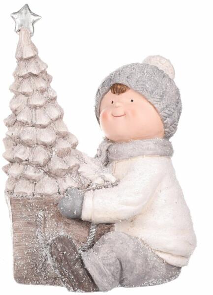 Autronic Karácsonyi dekoráció Fiú a fa mellett LED-esvilágítással, MgO kerámia, 39 cm