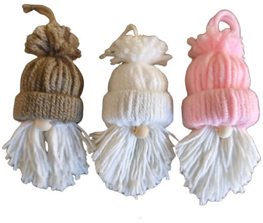 Aztadejó kézműves manó dísz - 1 darab fonalból készült karácsonyfadísz, ajándékkísérő (MANO10)