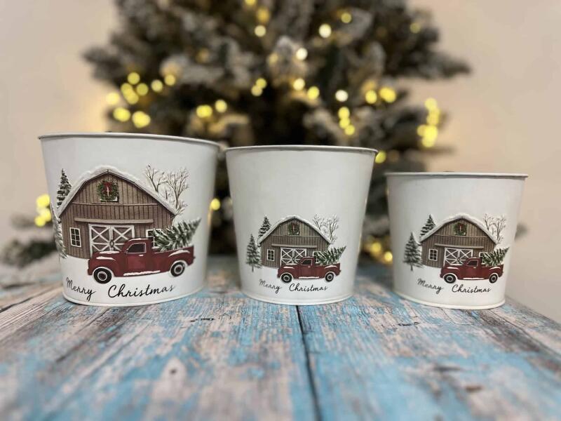 Bádog kaspó 3 részes autó fenyőfával mintával