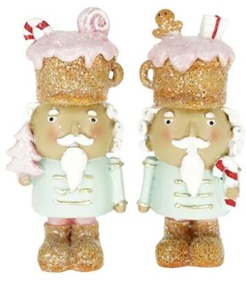 Dekoráció Diótörő cukorbottal, fenyővel álló poly 4x3x10 cm menta, rózsaszín 2 féle, 1db, pasztell karácsony (MX243158-4A)