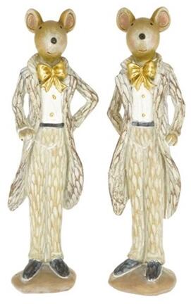 Dekoráció Egér ruhában, nyakkendővel álló poly 4x3x14 cm bézs, fehér 2 féle, 1db (MX242030-5.5A)
