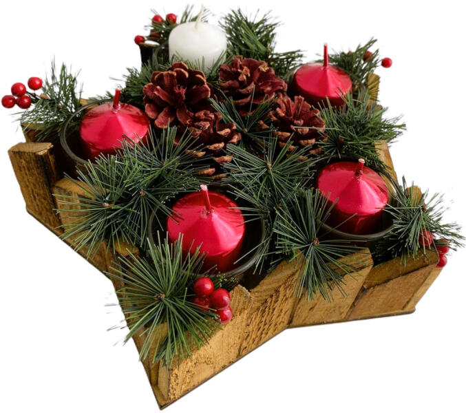 Az adventi koszorú nélkülözhetetlen eleme az adventi időszaknak. Szerezzen be egy adventi koszorút a családnak, az ünnepekre való ráhangolódást segítve. Az adventi koszorú 5 db gyertyát tartalmaz. 4 db piros 1 db fehér A képeken látható elemekkel.
