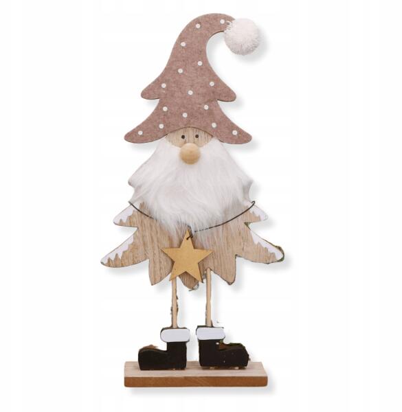 Emized Nagy karácsonyi manó állványon, hosszú krémszínű sapkával 13x5x24, 5 cm