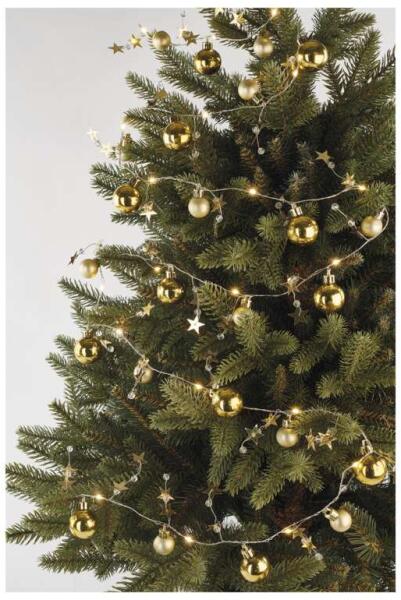 EAN kód: 8592920111369 - -beltéri -fogyasztás: 0,6 W -forma és megjelenés: arany gömb csillagokkal -tápellátás típusa: elem 2 x AA -tápvezeték hossza: 0,3 m -kábel színe: átlátszó -kimeneti feszültség: 3 V DC A háromállású kapcsoló funkciói: OFF (KI) - kikapcsolva. TIMER (IDŐZÍTŐ) - bekapcsolás után a termék naponta 6 órán át adott időközönként bekapcsol, majd 18 órára kikapcsol. ON (BE) - folyamatos világítás.