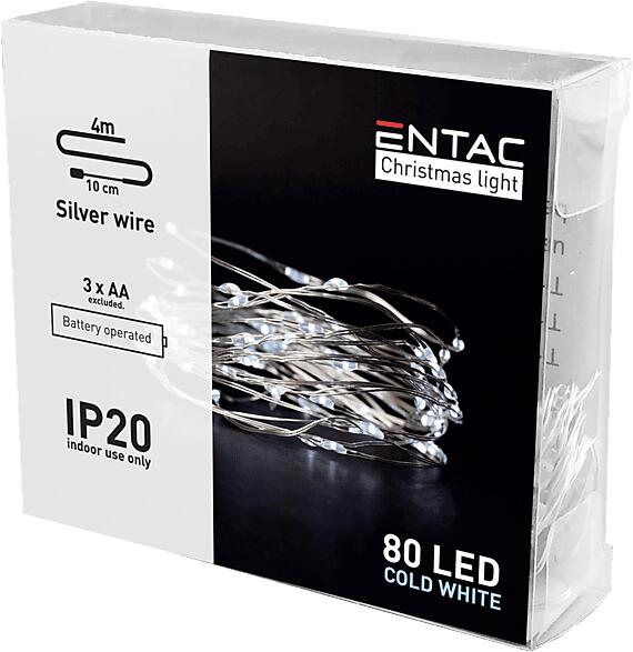 Entac Karácsonyi beltéri drótfüzér, 80 LED, hideg fehér, 4m (3x AA) (ECL-S80CW) (ECL-S80CW)