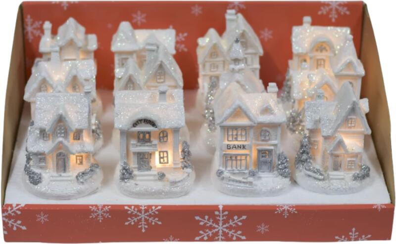 Fehér-ezüst világítós házikó kicsi 12db - OKOS ÁR!