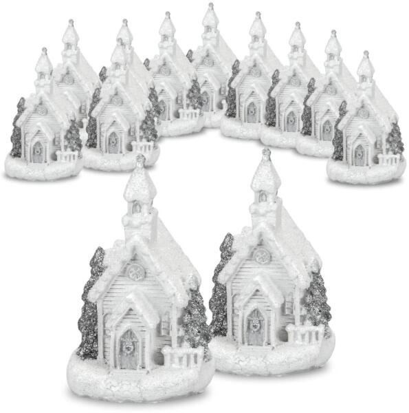 Fehér-ezüst világítós templom kicsi 12db/dob - OKOS ÁR!