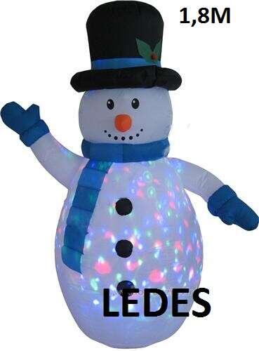 1,8m-es Felfújható LED-es Hóember: Ünnepi hangulat a kertben ☃️ Ez a varázslatos, 1,8 méter magas felfújható hóember LED világítással garantáltan feldobja az ünnepi hangulatot otthonában vagy a kertjében. Vidám külleme és a színes LED fények ragyogó látványt nyújtanak, és egyedi hangulatot teremtenek a karácsonyi szezonban. Főbb jellemzők:Méret: 1,8 méter magas Anyag: Strapabíró műanyag Világítás: Színes LED fényekkel Könnyű összeszerelés: Percek alatt felállítható és szétszedhető Beltéri és kültéri használatra is alkalmas: (feltéve, hogy megfelelő védelemmel ellátjuk rossz időjárás esetén) Élvezze a karácsonyi varázst ezzel a gyönyörű, fényes hóemberrel! ✨