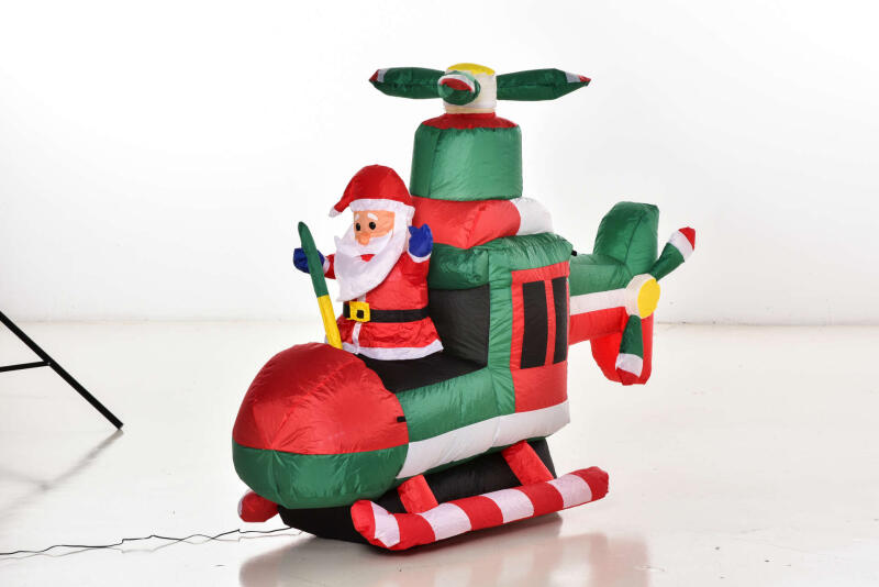 HOMCOM Felfújható Mikulás Helikopterrel - Karácsonyi Dekoráció ? Varázsolj ünnepi hangulatot kertedbe ezzel a vidám, felfújható Mikulás dekorációval! A helikopteren ülő Mikulás garantáltan mosolyt csal mindenki arcára. Főbb jellemzők: ✨ Beépített LED lámpák: Világítsd meg az éjszakát és teremts meghitt hangulatot. ? Gyorsan felfújható: Pillanatok alatt felállítható a beépített ventilátornak köszönhetően. ? Stabil rögzítés: A csomag tartalmazza a szükséges rögzítő eszközöket (szögek, kötelek, homokzsákok). ?️ Időjárásálló: IP44 védettségű poliészter anyagból készült, így kültéren is használható. ? Könnyen tárolható: Leeresztve kis helyen elfér. Műszaki adatok:Jellemző ÉrtékMéretek 155 x 63 x 107 cmAnyag 190T poliészterLED lámpák száma 4Vízállóság IP44Tápkábel hossza 1,8 mFelfújó DC 12V, 18WA csomag tartalma: 1 x Felfújható dekoráció 4 x Szög 4 x Kötél 2 x Homokzsák 1 x Felfújó 1 x Használati útmutató Fontos: A dekoráció folyamatos felfújásához a ventilátornak működnie kell.