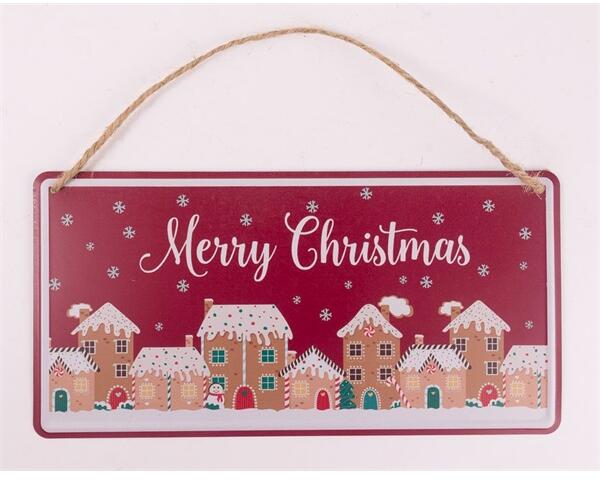 Iris bádog kép mézeskalács házak piros 30 x 15 cm (081274)