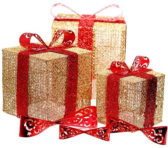 Több részes doboz alakú fém karácsonyi dekorációs szett műanyag masnival díszítve. Doboz méretek: 20cm, 25cm és 30cm Szín: arany-piros