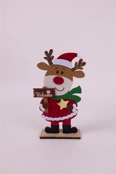 Iris filc rénszarvas fa talpon, mikulás ruhában, táblával, "welcome" felirat 12 x 4, 5 x 24cm (061740)