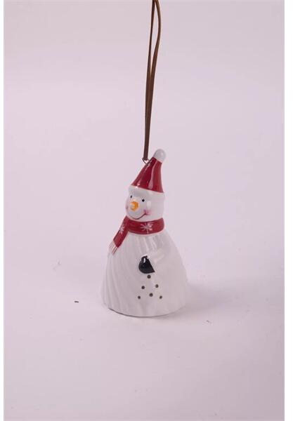 Iris kerámia csengő hóember, mikulás sapkában, fehér 12 cm (136600)