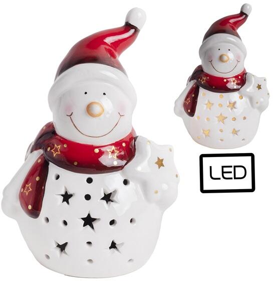 Iris porcelán piros/fehér hóember, ledes (181377)