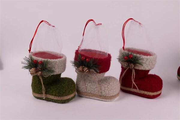 Iris textil és műanyag csizma, ilex ággal, bolyhos, 3 féle 14cm (061718)