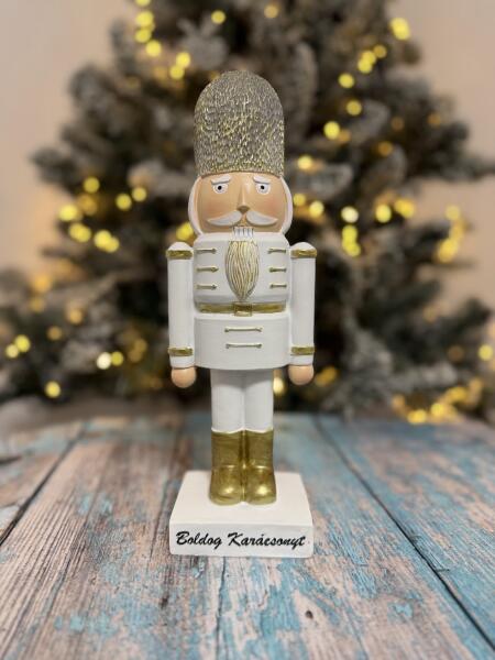 Karácsonyi dekorációs diótörő 26cm Boldog Karácsonyt felirattal.