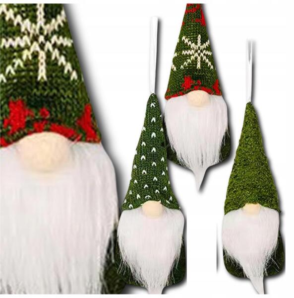 Karácsonyi manó Mikulás 15 cm-es függő készlet 3 db-os gnóm zöld (Świąteczny skrzat Mikołaj 15 cm krasnal)