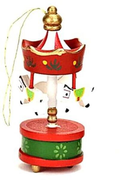 Fából készült, festett körhinta. Díszítheted vele a karácsonyfádat, de asztaldíszhez, koszorúhoz dekorációként is felhasználható