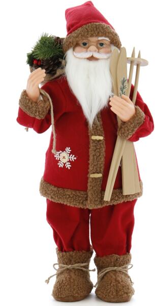 Kring Mikulás Kring figura, 60 cm, síléccel és ajándéktáskával, Piros/Barna (CK606-N229-60 cm)