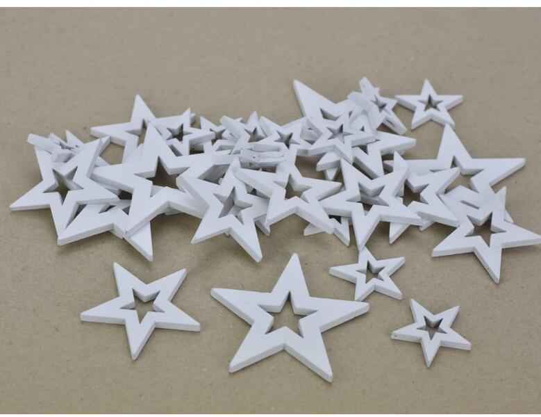 Fa - Lyukas csillag fehér vegyes méret 30db/csomag
