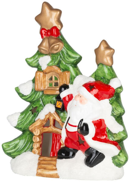 Hozd el otthonodba az ünnepi varázst a MagicHome karácsonyfa Mikulással LED dekorációval! Ez a gyönyörű, terrakottából készült dekoráció egy karácsonyfát és mellette Mikulást ábrázol, amely vidám és meghitt hangulatot sugároz. A díszben elhelyezett 1 darab melegfehér LED finom fénnyel világítja meg a jelenetet, barátságos és otthonos atmoszférát teremtve. A dekoráció beltéri használatra készült , működéséhez 2 db AAA elem szükséges (nem tartozék), és egyszerű BE/KI kapcsolóval vezérelhető. Tartós kialakítása és részletgazdag kidolgozása igazi különlegessé teszi ünnepi díszítésedet. A 27,3 x 11 x 34 cm-es méret és a 2 kg-os súly biztosítja, hogy stabilan és biztonságosan elhelyezhető legyen asztalon, komódon, polcon vagy az ünnepi asztal központi elemeként . Termékjellemzők: