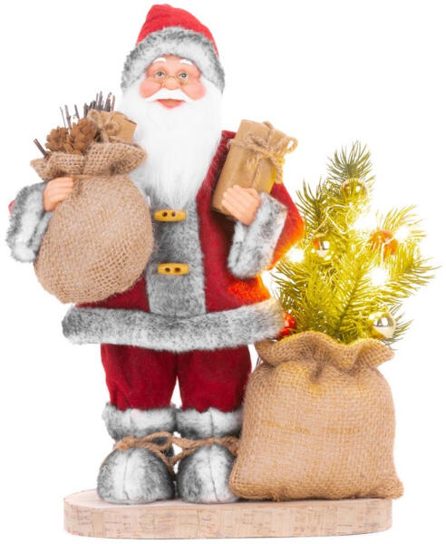MagicHome karácsonyi dekoráció, Mikulás táskával és karácsonyfával, 6 melegfehér LED, 30 cm (TC8091315)