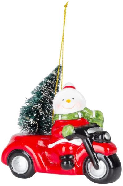 MagicHome MagicHome karácsonyi dekoráció, Hóember autóban, LED, terrakotta, 12, 5 x 6 x 11, 8 cm (ST8091298)