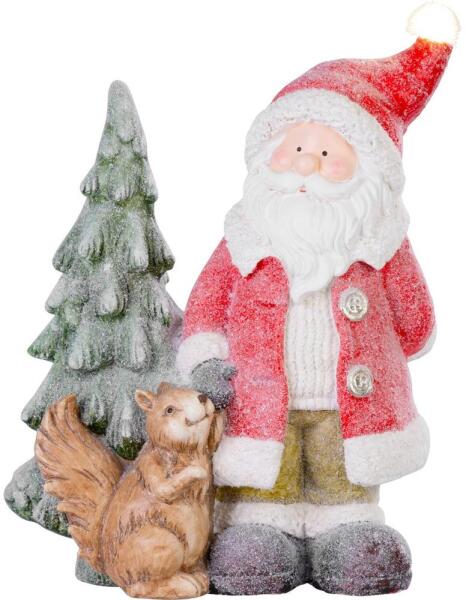 A csodálatos nagyméretű Mikulás mókussal és karácsonyfával dekoráció megszépíti otthonát a karácsonyi időszakban. A dekoráció világít, a 2x AAA elem nem része a termékdoboznak. Anyag: kerámia. LED-ek száma: 25 LED szín: meleg fehér. Méretek: 35,5 x 20 x 46 cm.