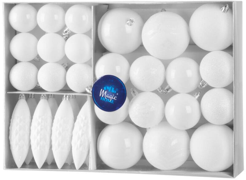 MagicHome MagicHome karácsonyi gömbök, készlet, 31 db, fehér, karácsonyfára
