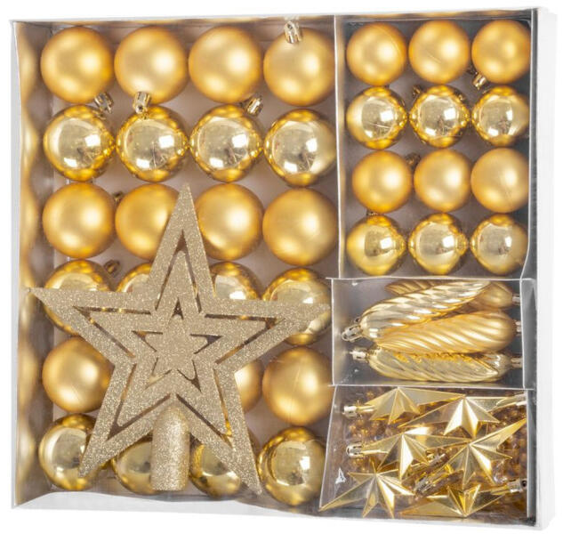 MagicHome MagicHome karácsonyi gömbök, készlet, 50 db, 4-5 cm, arany, csillag, füzér, toboz, karácsonyfára