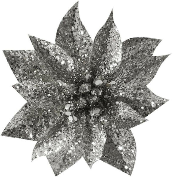 Magic Home Virág Glitterpoinsettia, Csipeszel, Ezüst, 9x8 cm, 6 db (STP018090760)