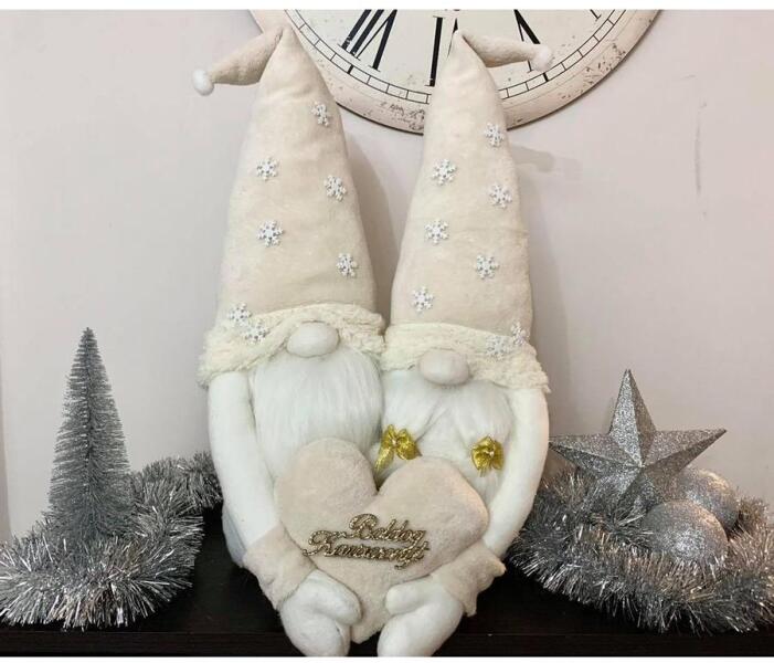 30-35 cm magas prémium minőségű anyagokból, antiallergén tömőanyag felhasználásával készült, tüneményes  manók párban, kezükben kézzel készült szívvel
