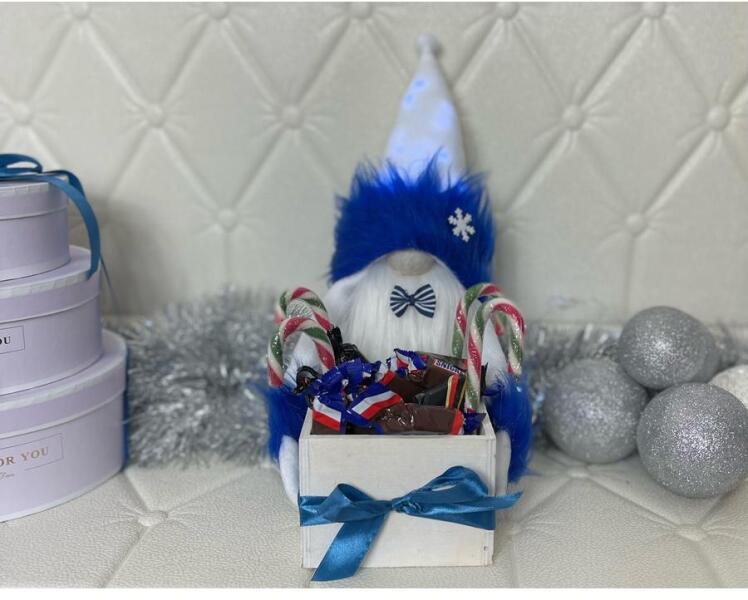 30-35 cm magas prémium minőségű anyagokból, antiallergén tömőanyag felhasználásával készült, élethű szilikon növényekkel díszített, tüneményes  manók kezükben fából készült 11x11x10 cm méretű, élethű, magas minőségű selyemvirágokkal kézzel díszített fadobozzal.