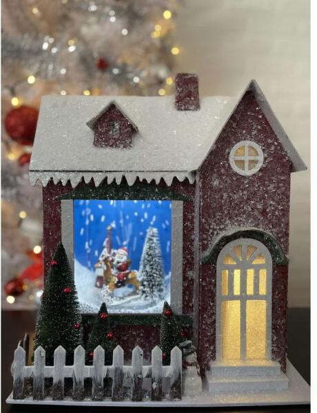 Manóvilág ÓRIÁS ZENÉLŐ, HAVAZÓ, LEDES HÁZIKÓ/HAVAS PIROS / 8 dallamos / /30X18X35 CM/ADAPTER