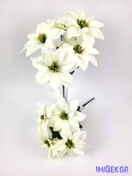 Mikulásvirág 5ágú selyemvirág csokor 33cm - Fehér