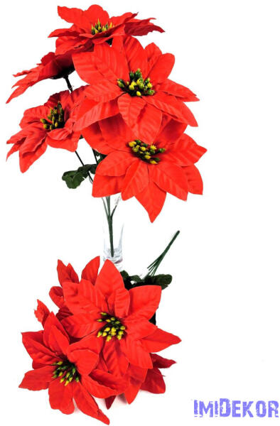Mikulásvirág 5ágú selyemvirág csokor 33cm - Piros