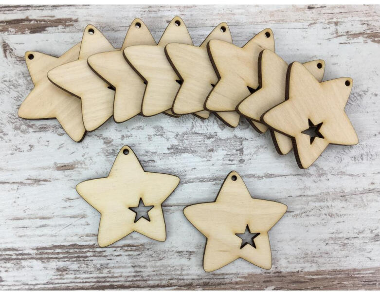 Natúr fa - Díszített csillag 4, 5cm 10db/csomag - papelito