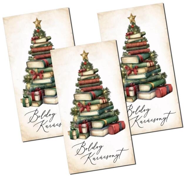 Nyomtatott dekorkarton - Boldog karácsonyt könyv fenyő 3db/csomag