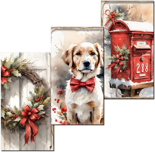 Nyomtatott dekorkarton - Karácsonyi piros téma táblák 3db/csomag - kosarbolt