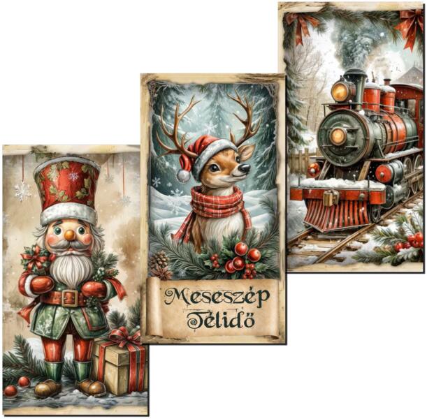 Nyomtatott dekorkarton - Karácsonyi piros-zöld téma táblák 3db/csomag - kosarbolt