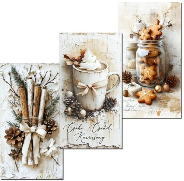 Nyomtatott dekorkarton - Vintage fehér téma táblák 3db/csomag