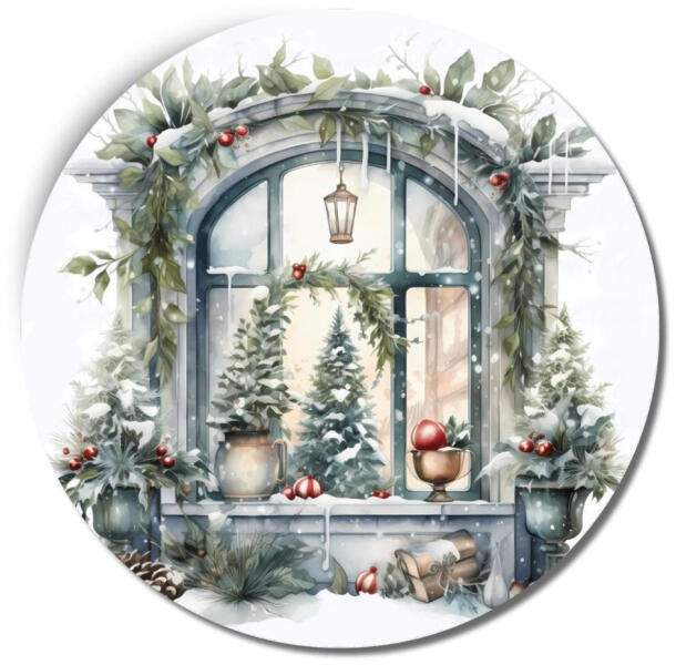 Nyomtatott fa tábla koszorú közép - Karácsonyi ablak grincs 14, 8cm - papelito