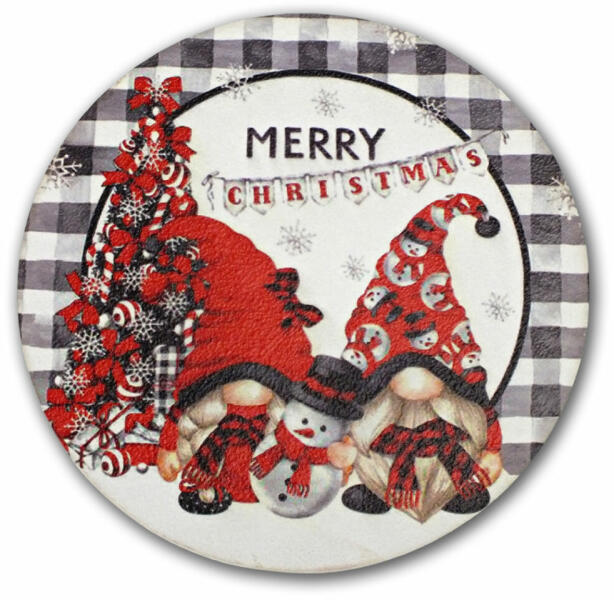 Nyomtatott fa tábla koszorú közép - Merry Christmas manós 14, 8cm - kosarbolt