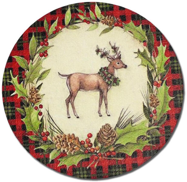 Nyomtatott fa tábla koszorú közép - Szarvasos piros kockás 14, 8cm - papelito