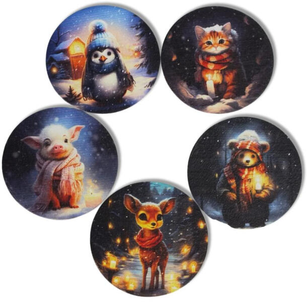 Nyomtatott fa tábla - Téli kisállatok 5db/csomag - papelito