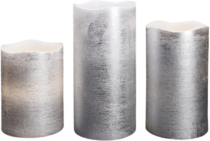 Solight LED gyertya készlet, 3 db, 10/13/16 cm, ezüstszín (1v286)