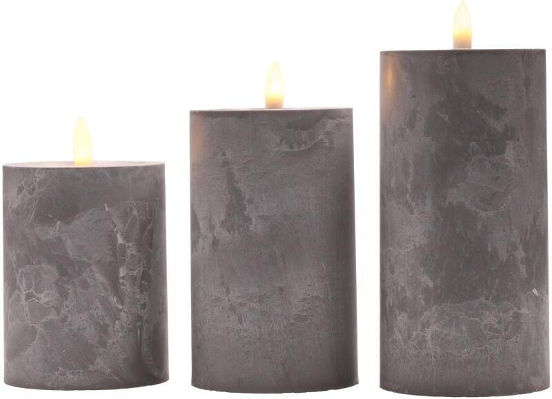 Solight LED gyertya készlet, időzítővel, 3 db, 10/13/15 cm, szürke (1v285)