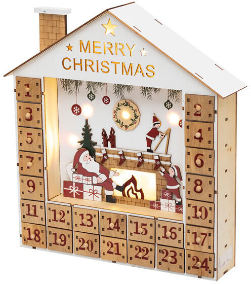 Hangulatos és praktikus kiegészítő az ünnepi időszakra. Ez a fa adventi naptár nemcsak a meglepetések tárolására szolgál, hanem 10 db melegfehér LED-jének köszönhetően különleges, ünnepi fénybe is öltözteti az otthont. Stílusos kialakításával és természetes anyaghasználatával meghitt karácsonyi hangulatot teremt. Az elemes működésnek köszönhetően bárhol elhelyezhető, nincs szükség konnektorra. Ideális választás családoknak, gyerekeknek és mindenkinek, aki szereti a kreatív és dekoratív ünnepi megoldásokat. Paraméterek: