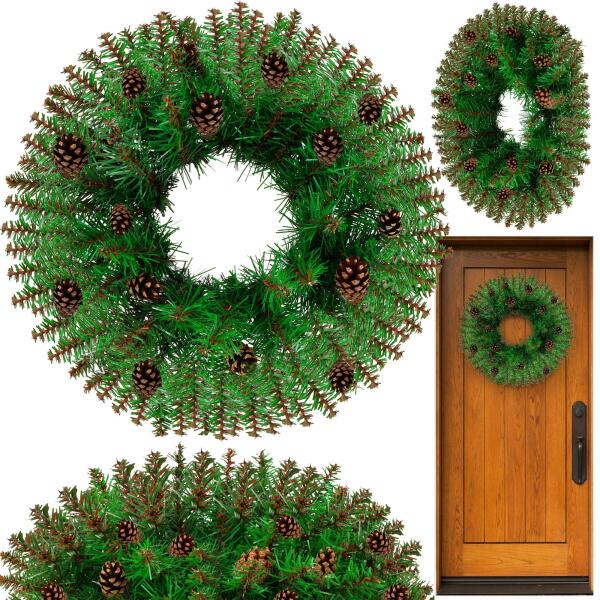 ALAPVETŐ ADATOKMárka: Springos®Szín: zöld barna elemekkelAnyag: fém, műanyag, természetes tobozokÁtmérő: 45 cmTípus: műfenyőágakból készült koszorú tobozokkalMéretek:Teljes átmérő: 45 cmBelső átmérő: 18 cmÁghossz: kb. 13 / 15 cmKoszorú szélessége: kb. 15 cmEgyes ágak szélessége: kb. 5 cmToboz méretei: kb. 5 x 3 cm (a tobozok természetesek, méreteik eltérőek lehetnek)