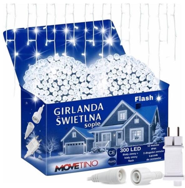 12 m-es 300 LED-es hálózati adapteres jégcsap hosszabbítható fényfüzér, fehér kábeles, hideg fehér csillogó Hideg fehér effekttel, IP44 Egyedülálló dekoratív világítás LED-es jégcsapok formájában, amelyek Fényt ad minden belső vagy kültéri térnek.  Ez a készlet A világítás  finom, hideg fehér fényt  biztosít, amely Tökéletesen hangsúlyozza a karácsonyi hangulatot. A LED-ek használatának köszönhetően a világítás Energiatakarékos és tartós, így kiváló befektetés sok éve. A lámpák folyamatos üzemmódban, vakueffektussal , másodpercenként világítanak jégcsap van egy  villogó LED hideg fehérben, csillogó csillagok benyomását keltve, ami  nagyban növeli a díszített tér dinamikája és varázsát.  Ez a termék a következőkkel használható: sikeresen  alkalmazzák mind a belső és   a fedélzeten, mind a kint,  ami sokoldalú választássá teszi bármilyen karácsonyra vagy különleges alkalmak. A függöny bárhová könnyen rögzíthető és  csatlakoztatható a következő készletekkel,  amelyeknek köszönhetően lehetőségünk van létrehozni eredeti világítási elrendezés. Műszaki adatok: